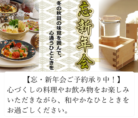 季節を彩るお料理四季折々の食材を活かした和洋会席料理や、秋田の銘酒に合う特別メニューなど、多彩なお料理プランをご用意しております。※おひとり様+3,000円で飲み放題コースもございます。詳しくはView Moreをクリックでお確かめくださいませ。