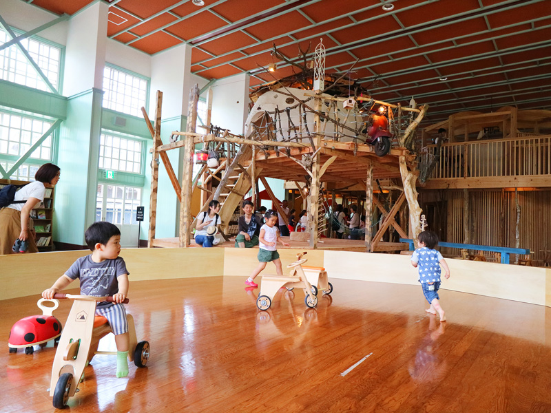 旧鮎川小学校をリノベーション。木のおもちゃで大人も子どもも夢中! 当館専用プランならお泊りいただくお部屋にも木のおもちゃがいっぱいです。